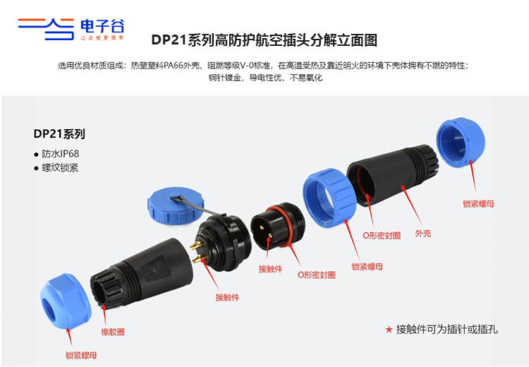 (图2 电子谷DP系列防水航空插连接器塑胶款)