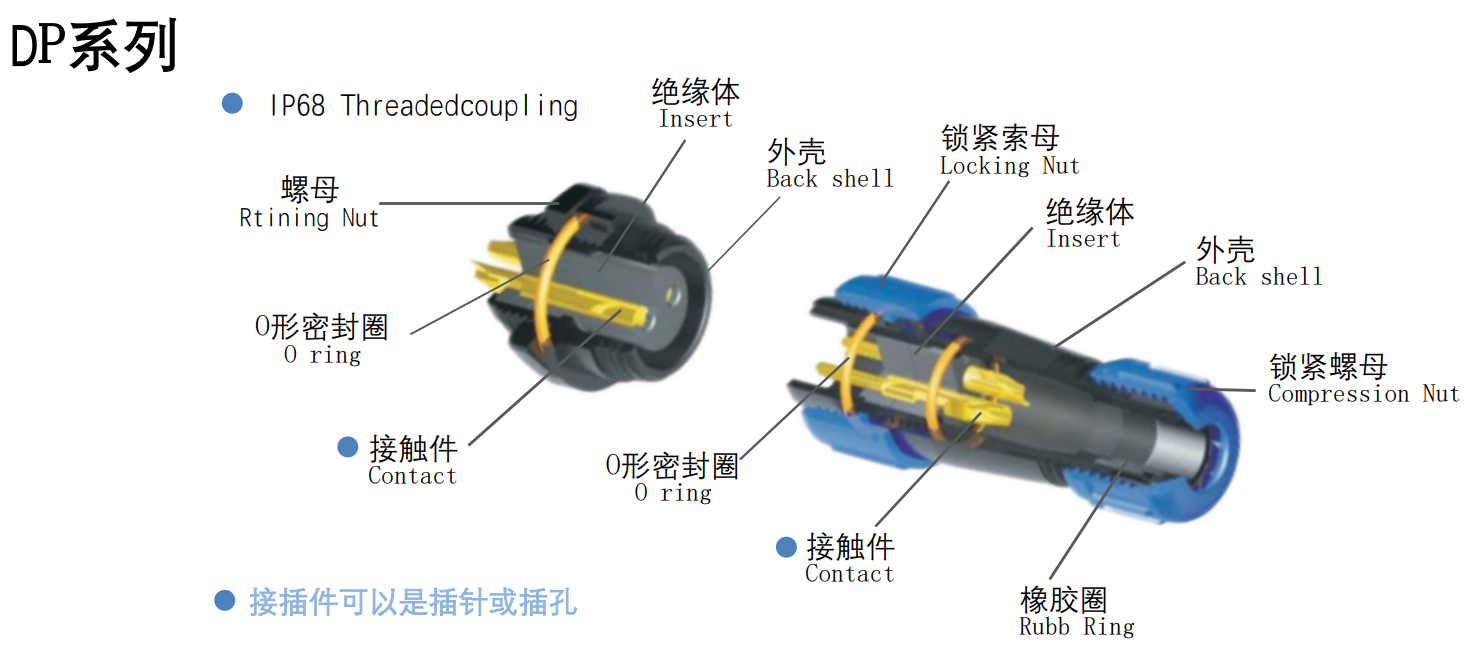 (图2 电子谷DP系列航空插头结构拆解图)