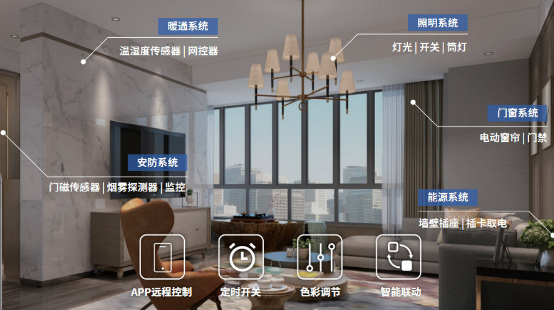 与传统照明相比,智能照明在布线方式、管理模式、功能体验等方面实现全方位升级。传统照明依赖固定电线布线,改造难度大,且采用单点手动控制,无统一管理平台,仅能实现基础开关与亮度固定照明,常亮模式为主导致节能性差,灯具也仅含光源与基础控制组件,功能单一;而智能照明采用无线、总线或电力载波等灵活布线方式,支持免布线升级,可实现集中控制与远程操控,搭配自动化场景设置,具备多维度调节、场景联动、智能感应等丰富功能,通过精准控光与感应触发实现显著节能,灯具集成传感器与通信模块,具备完整的智能硬件属性。